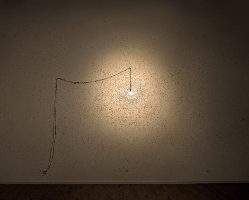 1.Close to the Warm, light bulbs, wires and stickers, variable dimensions, 2013