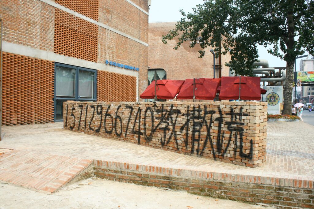 13. Teaching Lies, brick, spray paint, 8×1.2×0.3m, 2005