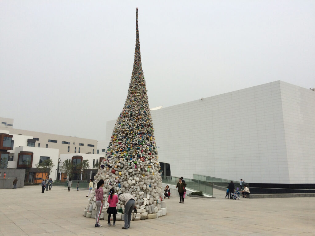 While the inspiration for this piece may stem from the environmental issues highlighted in China since the turn of the new millennium, its formal influences should be traced back to Australia, or rather, to Western contemporary art as a whole. Using inexpensive industrialized products to satirize the sublime and classicism was a common practice in the latter half of the 20th century in Western contemporary art, with Italy’s “Arte Povera” being the most well-known example. By the time of Wang Zhiyuan in the 1990s, Australia had witnessed a movement known as “Avant-Grunge,” characterized by anti-sublime and marginalized narratives as its primary visual features. (13)